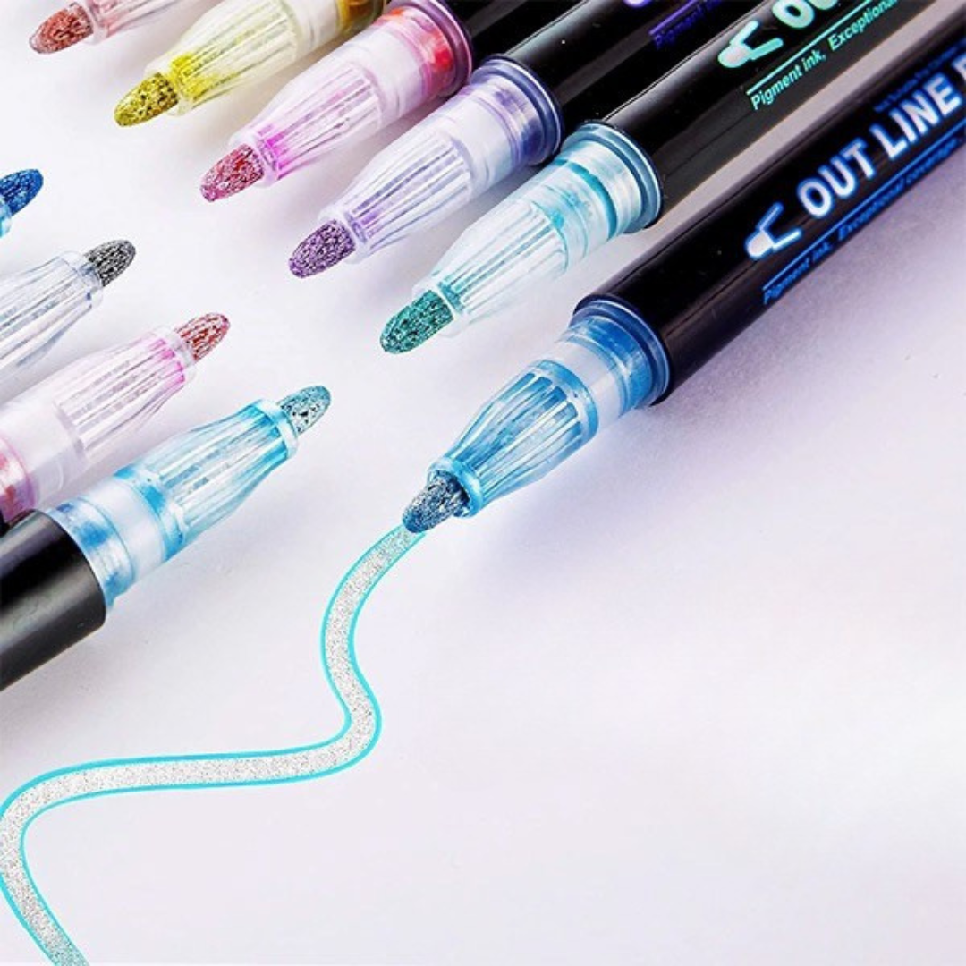 Twórz przyciągające wzrok projekty DIY dzięki wyjątkowym markerom z podwójną linią, które rysują srebrny środek otoczony żywą, kolorową ramką. Markery METALINK natychmiast dodadzą uroku kartkom okolicznościowym, notesom, plakatom i dekoracjom — sprawiając, że każda praca wygląda magicznie i profesjonalnie.