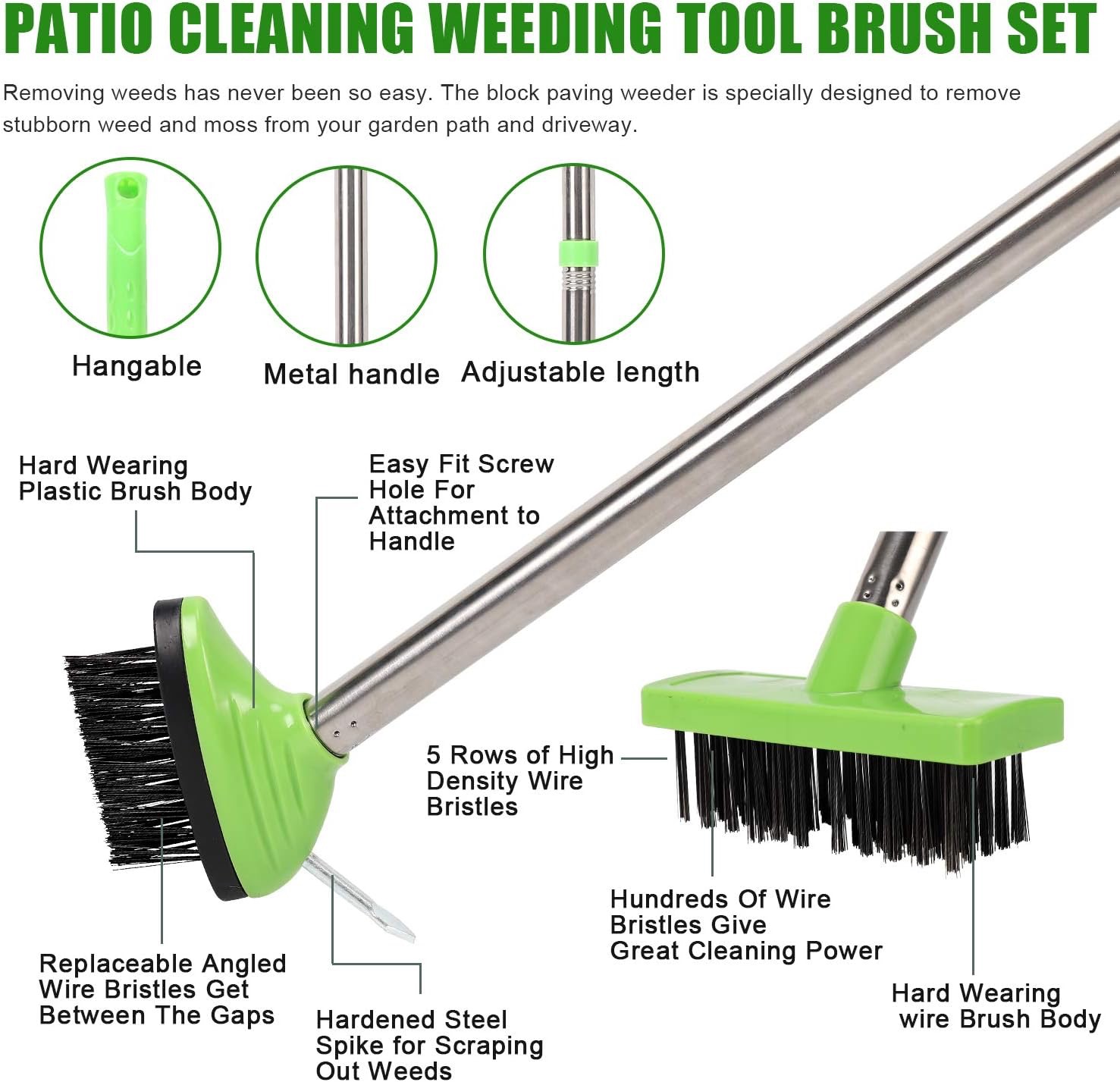 Zestaw zawiera skośną szczotkę do chwastów do precyzyjnego czyszczenia, szeroką szczotkę drucianą do zamiatania powierzchni oraz wąski skrobak do fug do usuwania uporczywego brudu. Każdy element został zaprojektowany tak, aby z łatwością radzić sobie z różnymi zadaniami czyszczącymi.