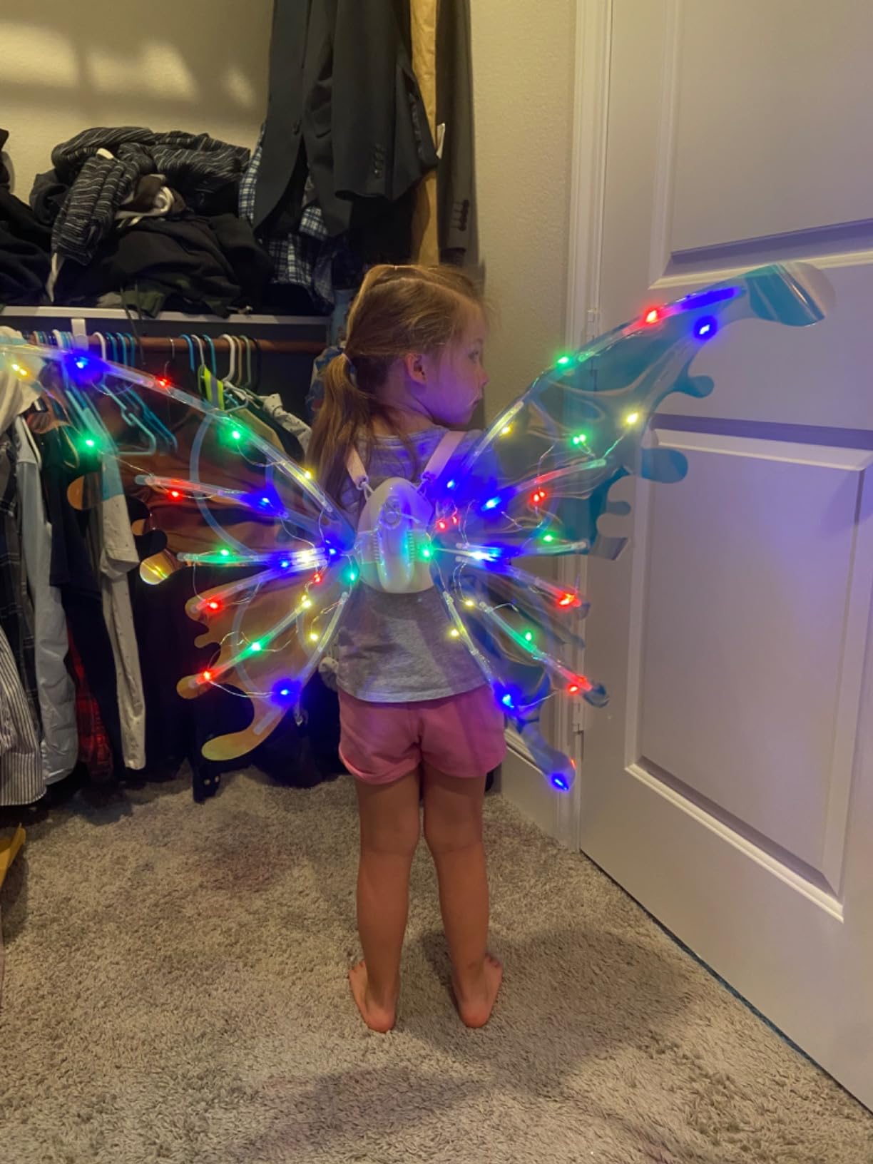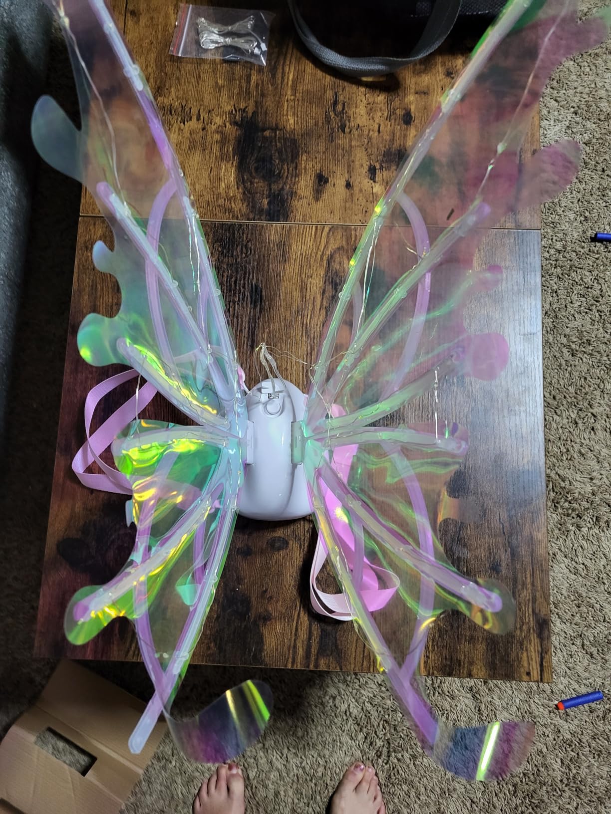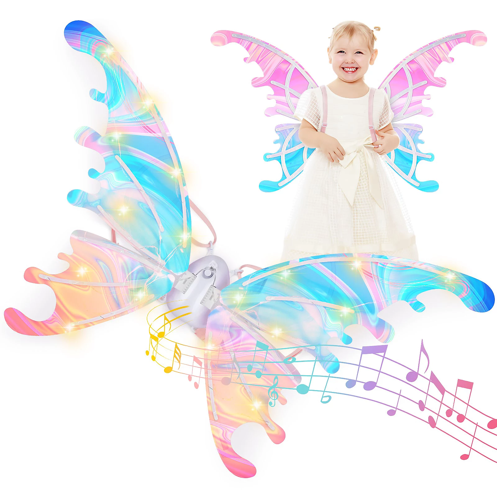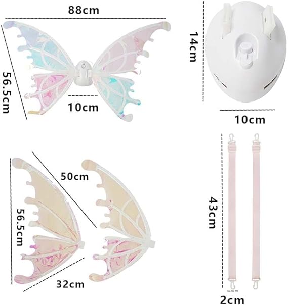 Skrzydła mają nowoczesny i elegancki design z laserowym, połyskującym materiałem, który po włączeniu zmienia kolory. Automatyczne machanie skrzydłami tworzy urzekający efekt bajkowej wróżki, który przyciąga wzrok w każdym miejscu. ✨🌈 💫 Doskonały prezent dla dziewczynek, które marzą o tym, by stać się baśniowymi księżniczkami i tworzyć niezapomniane wspomnienia. 👑🦋