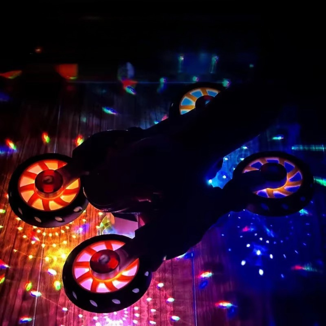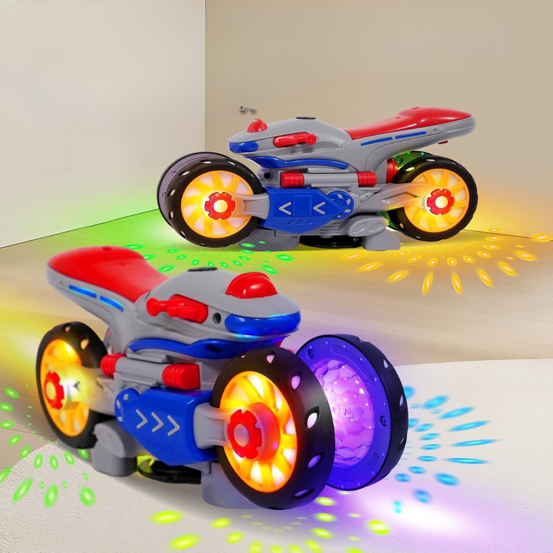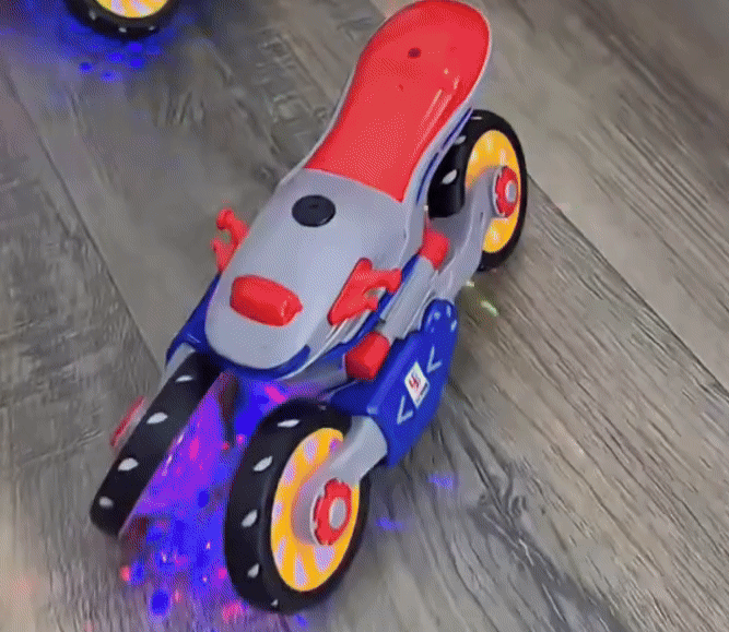 Motocykl obraca się o 360 stopni i natychmiast reaguje na przeszkody, tworząc pełne dynamiki i zabawy doświadczenie. Jasne światła LED i żywa muzyka zamieniają każdą jazdę w kolorowe i wciągające show, które przyciąga uwagę i pobudza wyobraźnię dzieci.